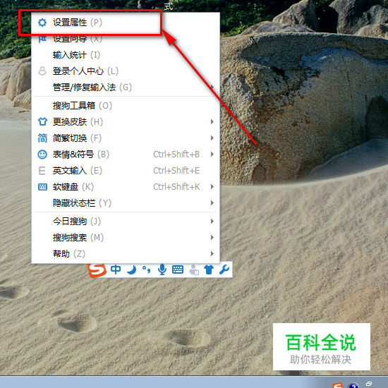 在这里我以搜狗输入法为例,如图,在输入法上面单击鼠标右键,然后点击“设置属性”。