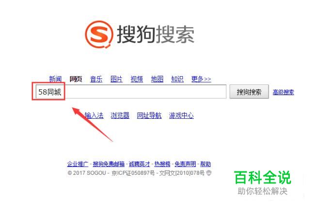 打开搜狗浏览器,在搜索输入框内输入58同城搜索词,如图所示:
