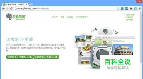 在印象笔记网站中点击“印象笔记·剪藏”图标,点击“获取印象笔记·剪藏Chrome版”按钮。