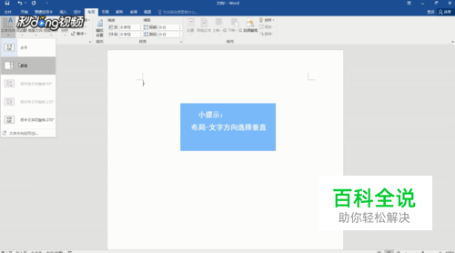 方法一:打开word,在“布局”选项卡单击“文字方向”。