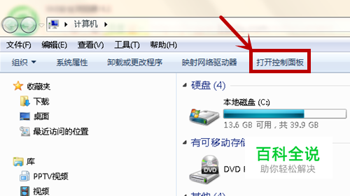 打开电脑计算机,打开控制面板。