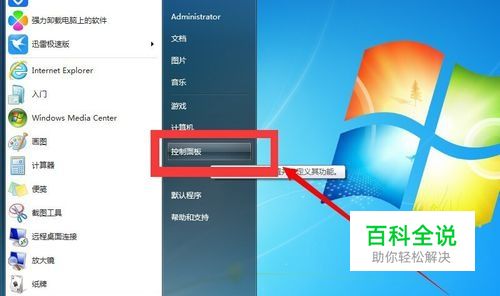 打开开始菜单,点击“控制面板”
