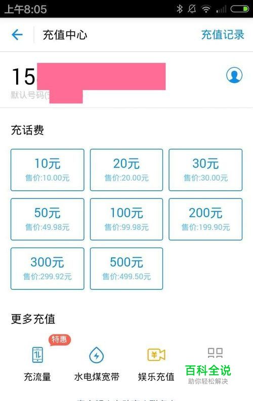 打开手机支付宝,点击充值中心,填写充值号码后选择充值金额。