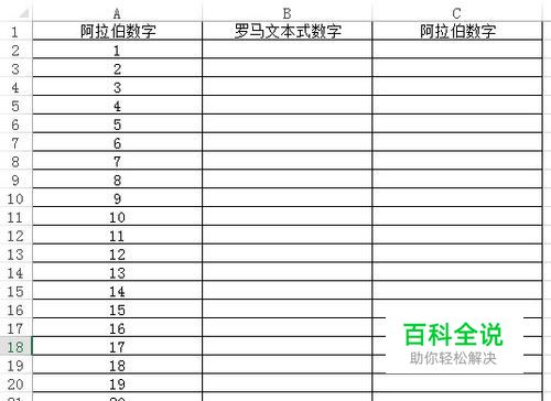 在B2单元格输入“=ROMAN(A2)”。