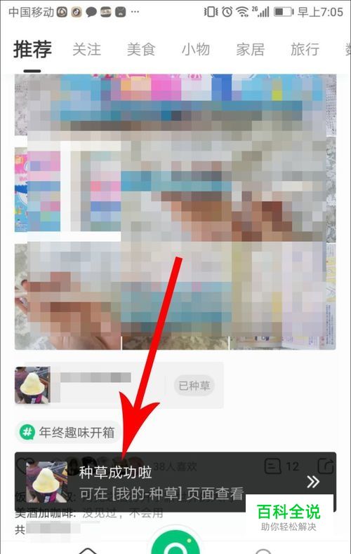 点击之后,界面底部会弹出“种草”成功的提示信息,见下图