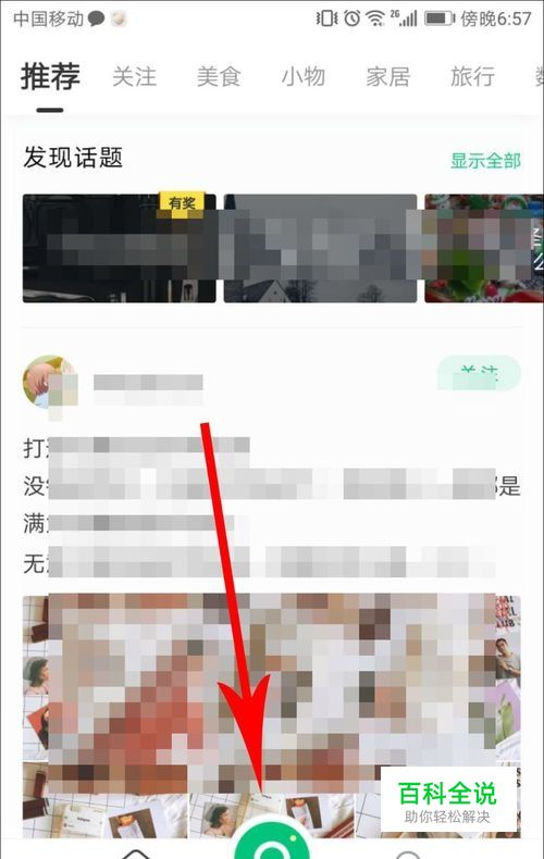 准备要种草时,打开新草app并登录,而后点击界面底部的绿色圆圈,位置见下图