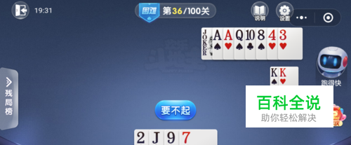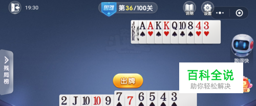 跑得快打出一张小王,接着打出一张4,然后我打出一张2就过关了。