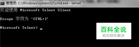 安装完成后,重启CMD窗口,输入Telnet,会出现如下截图: