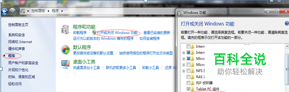 方法:控制面板->程序和功能->打开或关闭Windows功能,如下勾选确定