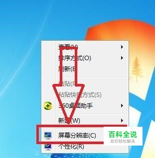 右击电脑桌面的空白处,弹出右击的下拉子菜单,在子菜单中可以找到“屏幕分辨率”。