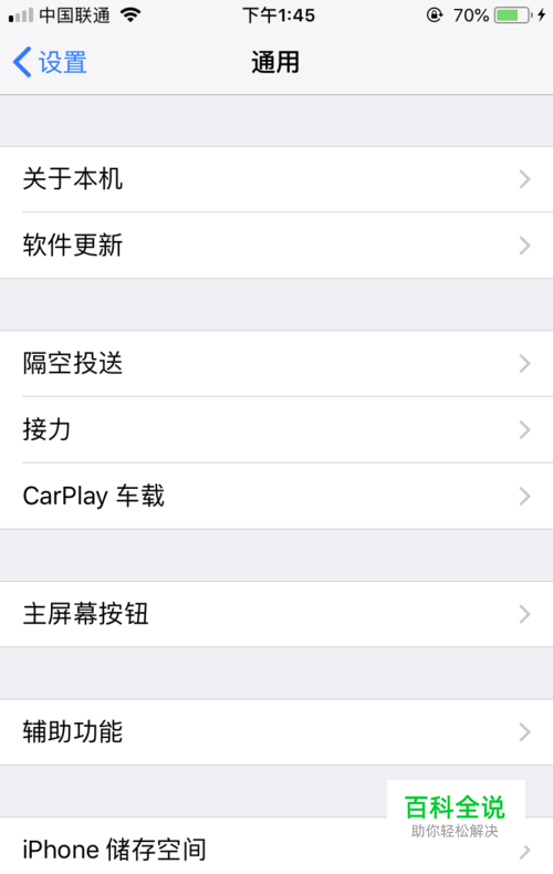 第二步:打开通用以后,选项向下拉,找到辅助功能,然后点击