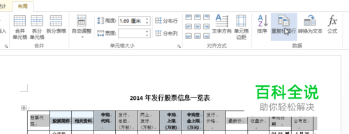 选中希望重复的行作为标题行,然后在"布局”菜单的右侧点击"重复标题行"