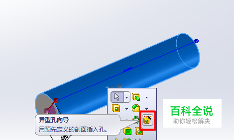 选中圆柱面,同时按下键盘“S”键,选择异型孔向导,如下图