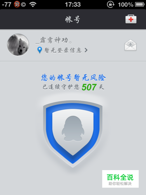 首先打开安全中心,会提示您的账号有无风险,已保护多少天的信息,如图所示。