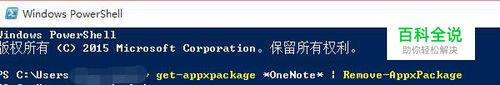 在windows PowerShell中写入或直接复制粘贴下面代码。 get-appxpackage *OneNote* | Remove-AppxPackage