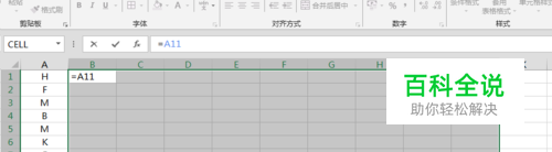 按下Enter键后,将区域全部选中,编辑栏输入公式=A11,如下图所示: