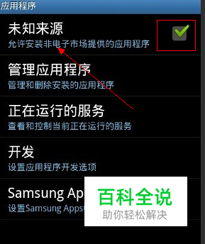 在手机设置界面里面找到安全(有的在应用程序中)打开后找到未知来源打上对勾允许安装来自未知来源的应用,不同的版本可能找到的方法不一样但是设置里面肯定会有这一项的 如果没找到也不要紧可以忽略这一步安装的时候可能会提示到时候允许就可以了