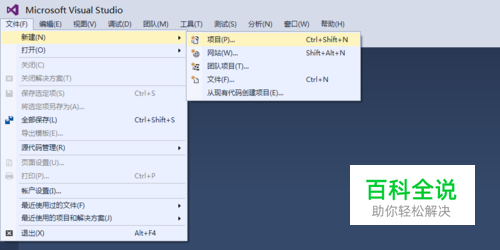 安装好了Visual Studio2015了以后我们点击进去。首先点击文件——新建——项目就可以到达我们要创建的项目类别处了。或者按键盘上的Ctrl+Shift+N也可以进入新建项目。