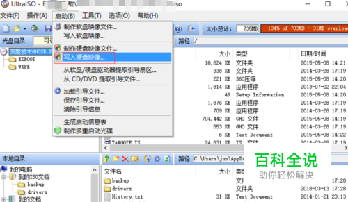 2)选择启动-》选择写入硬盘映像。