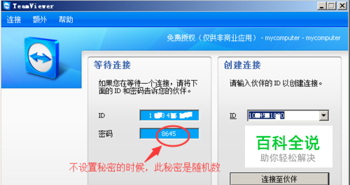 在另一台电脑上同样双击打开该软件,也会生成一个ID,我们以该电脑为B。此时。如果A想控制B,在两台电脑都连接外网的情况下,在A处的创建连接处,录入B电脑的ID,连接即可。 注意:B电脑必须设置至少4位数的密码。 反之亦然。