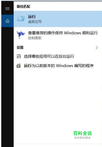 首先打开win10系统的搜索功能,在搜索输入框中输入运行。然后点击搜索结果中的运行桌面应用,打开系统指令运行窗口;