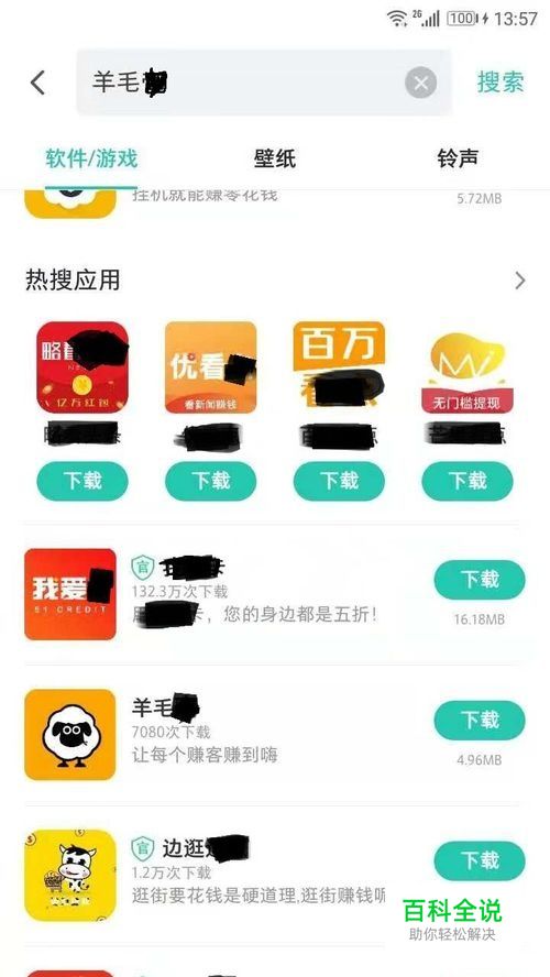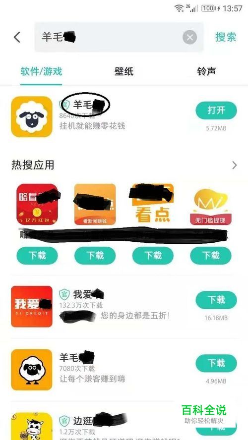 到各大手机应用市场找“羊毛*”