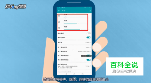 分别将铃声、媒体、闹钟的音量调到最小。