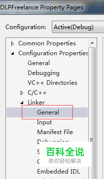 在属性页左边菜单栏,有很多选项,选择linker->general: