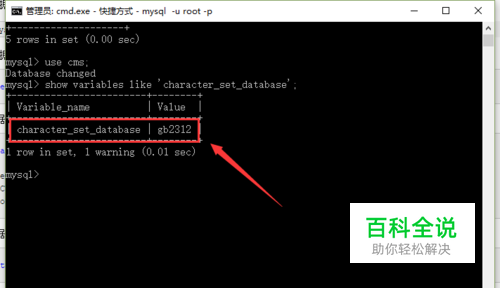 查看cms数据库当前的字符集。 show variables like 'character_set_database';