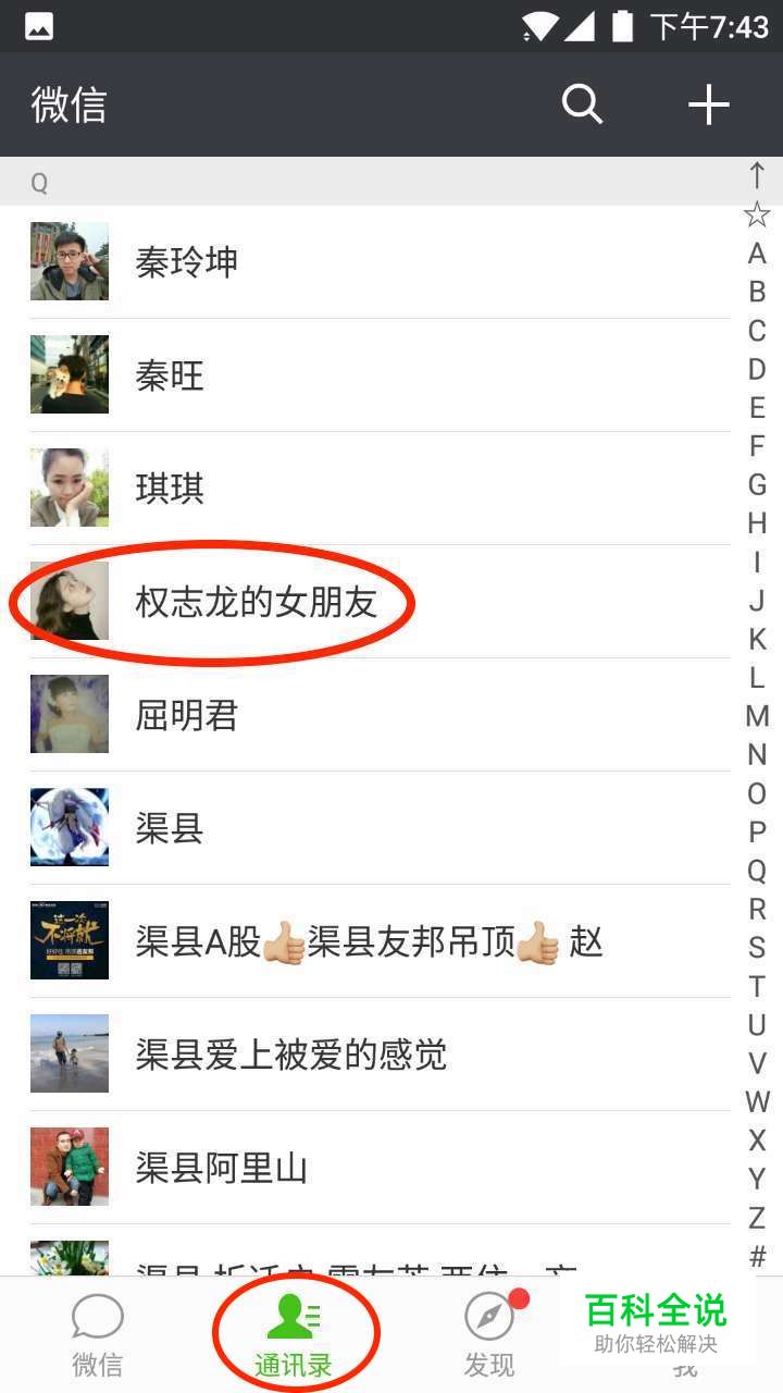 然后在“通讯录”里找到到你要给他发语音的那个人,点击他的头像。