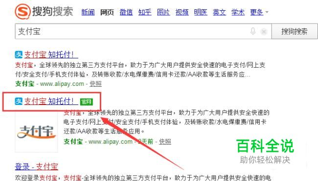 首先需要登录电脑支付宝,打开搜狗搜索,输入“支付宝”。