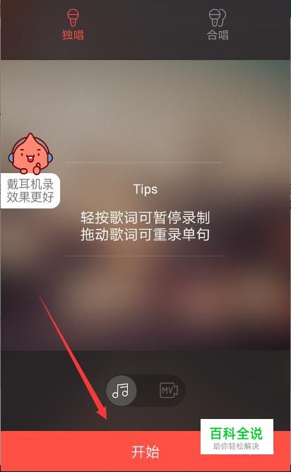 首先,打开唱吧app,点击“唱歌”,任意点击一首歌曲开始演唱。