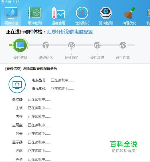 先对电脑进行一次硬件检测,过程很快,大约需要不到一分钟就能够完成。