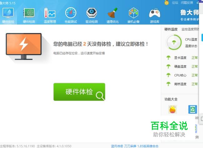 可以借助鲁大师来查看。网上搜狗搜索一个官方的鲁大师下载安装好之后运行鲁大师软件。