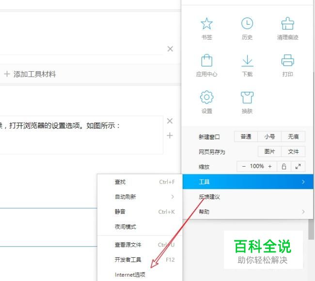在下拉菜单中选择工具命令,并选择Internet选项。如图所示:
