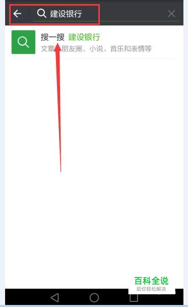 在这里小编我就以查询建设银行银行卡为例说明。首先,在微信搜索“建设银行”。