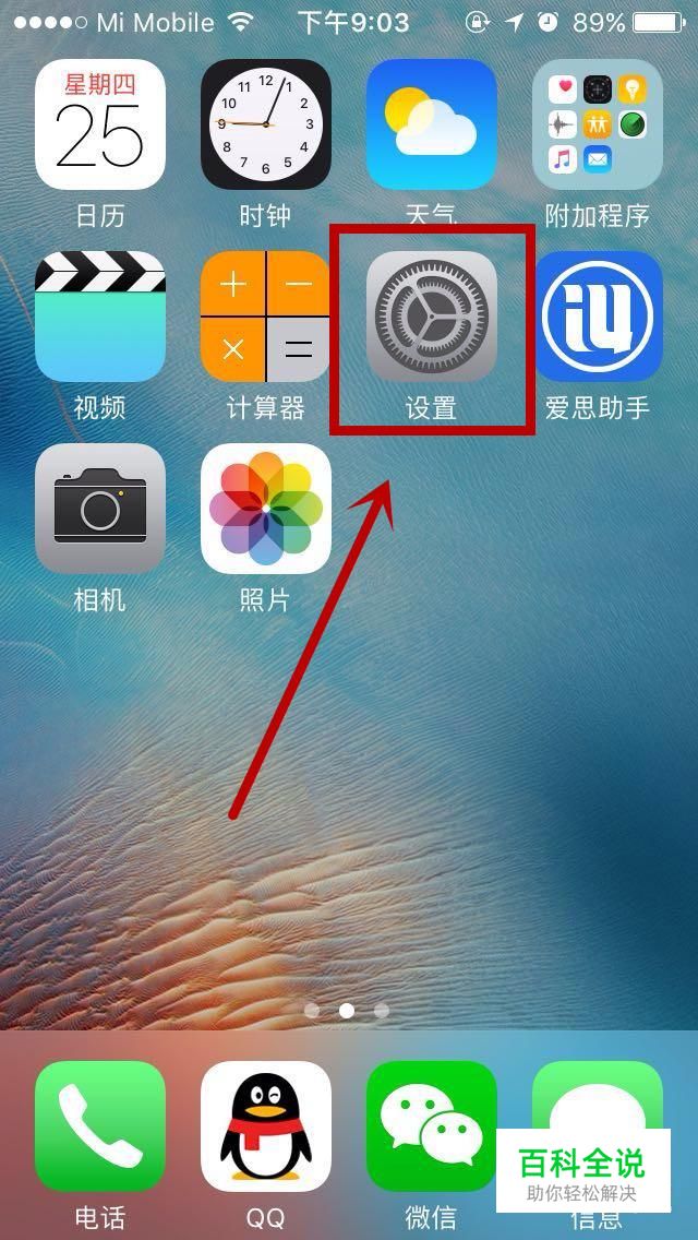 打开苹果手机,主界面找到“设置”,点击进入。