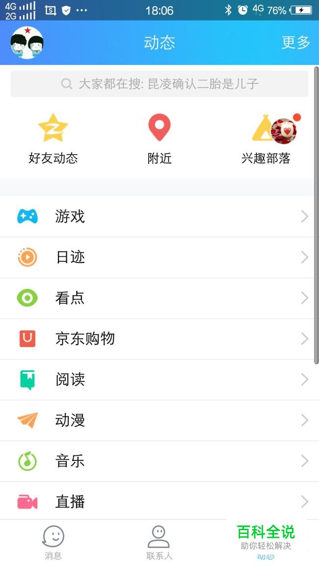 打开手机qq,在主界面选择动态。