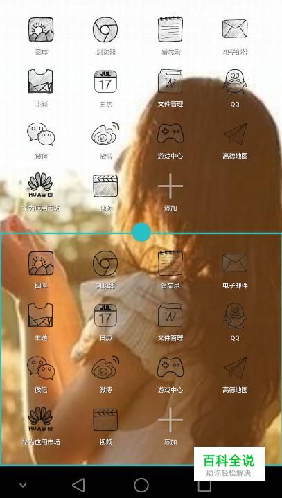 这时,手机主页面会分成两个小屏幕。