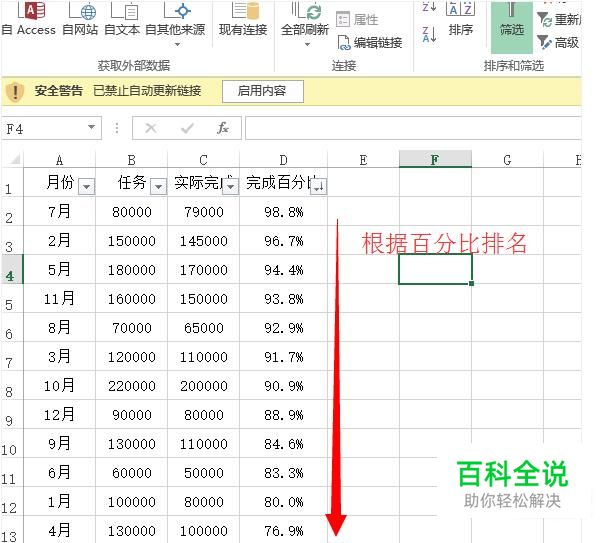 点击百分比单元格右下角的小箭头,点开下拉菜单,选择“降序”。