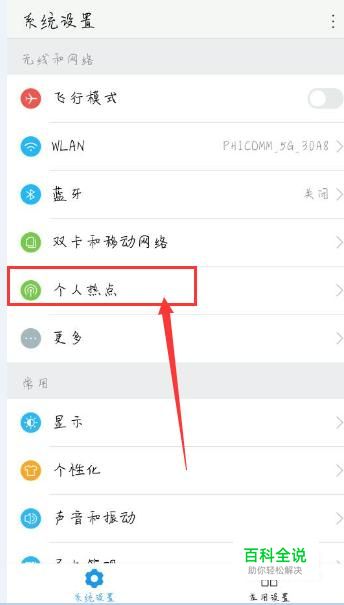 在手机的设置界面找到“个人热点”选项,并点击它。