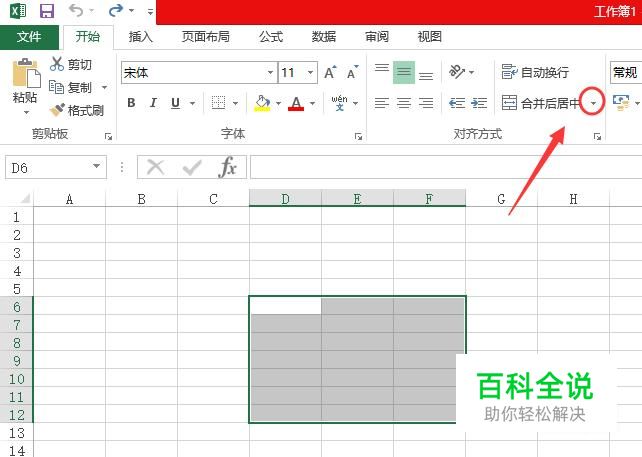 在开始菜单栏找到合并的选项,点击右边的倒三角形,如图。