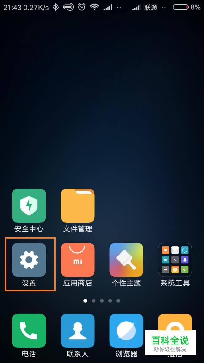 小米手机的自家系统MIUI以人性化,可玩性高出名,其中有一项功能是选择设置手机的节能模式与性能模式,下面就以MIUI8.1介绍一下这个功能。 首先打开手机的【设置】;