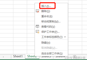 2.然后选择"插入工作表"即可。新的工作表的排序就会在当前工作表之前。