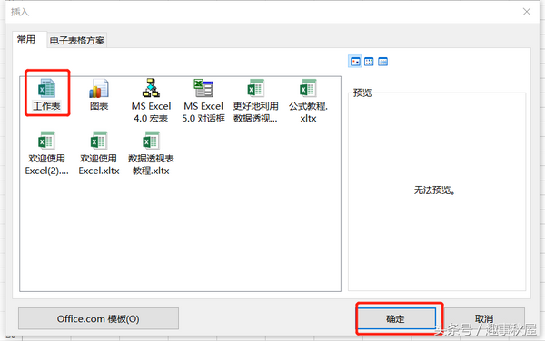 3.在"插入"窗口里面,默认会选中第一个"工作表"选项。