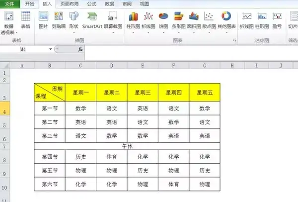 第三部:在单元格中输入周期和课程,两个词中间用alt enter键进行强制换行;