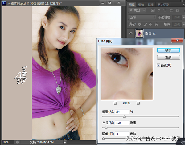 15、盖印图层,执行滤镜--USM锐化,对图像进行适当锐化。