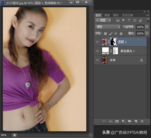 8、用画笔工具擦出人物胸部以外的地方,使整体画面更加协调。
