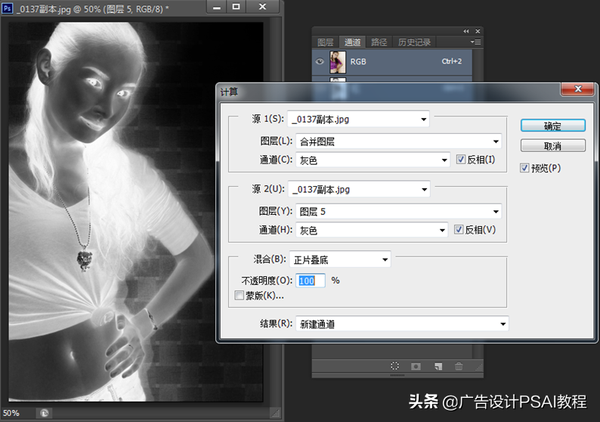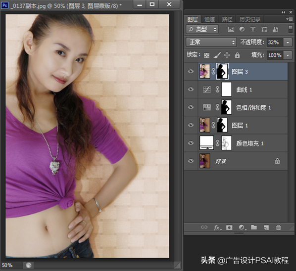 6、将效果图层转换为普通图层(添加一个透明图层并与效果图层合并),改变图层不透明度。添加蒙版,擦出人物部分。