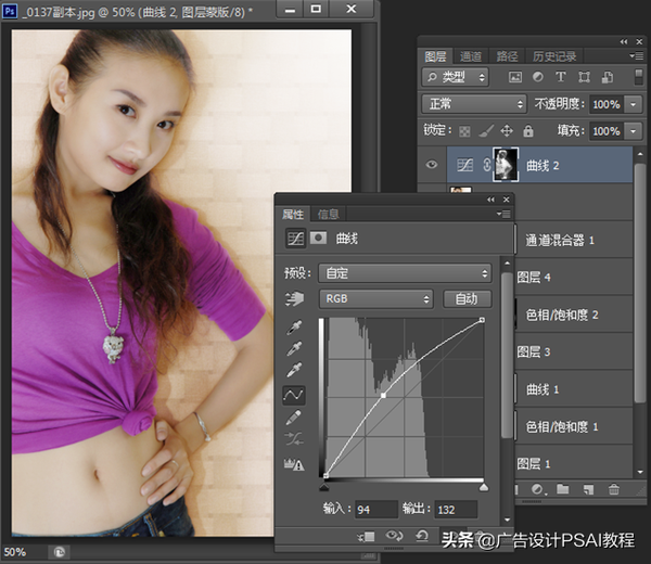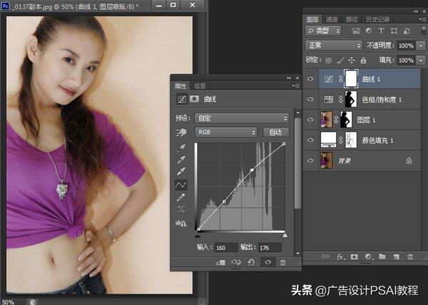 4、添加曲线调整图层,整体调亮图像,增加图像的对比度。